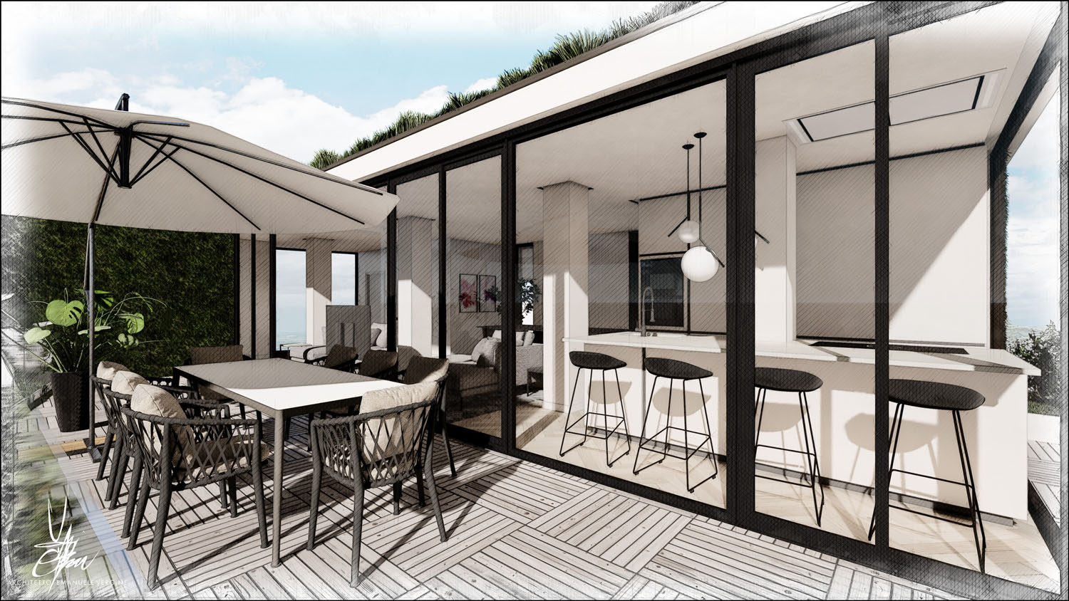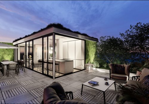 Una soluzione ardita dal forte impatto visivo, in grado di fornire una forte caratterizzazione alla costruzione.
