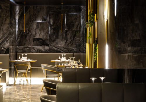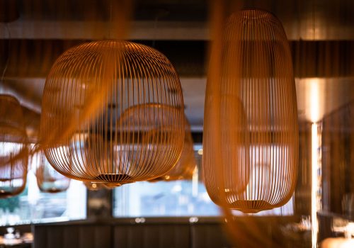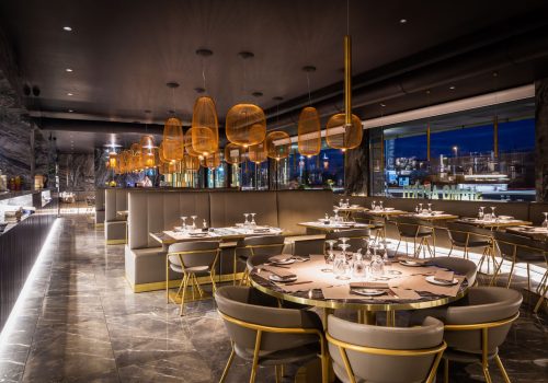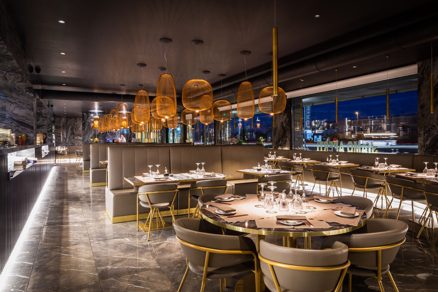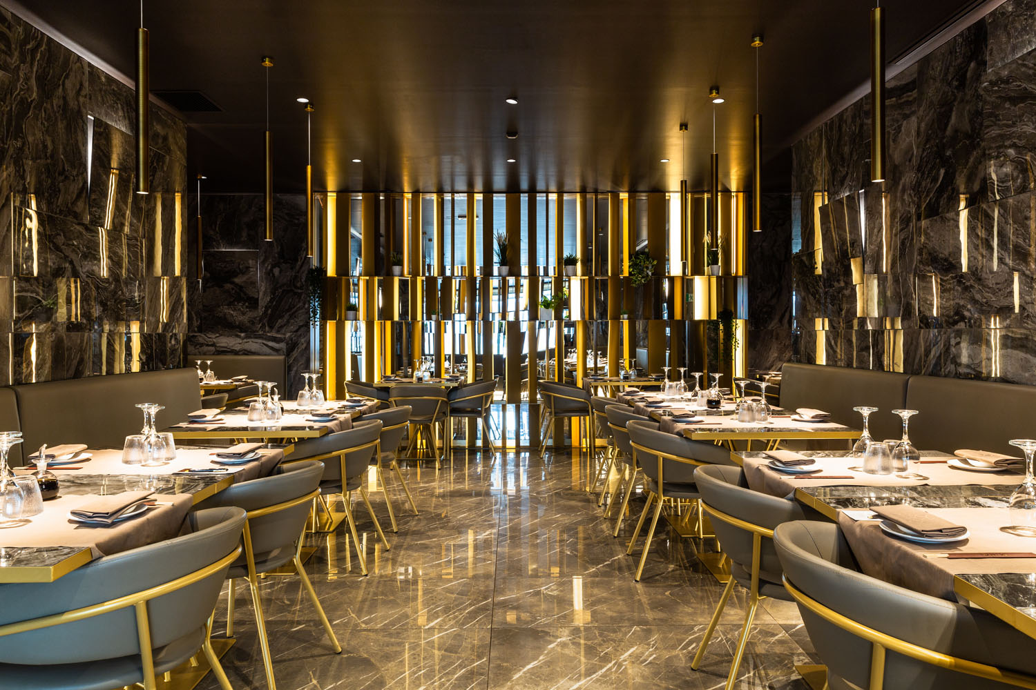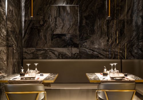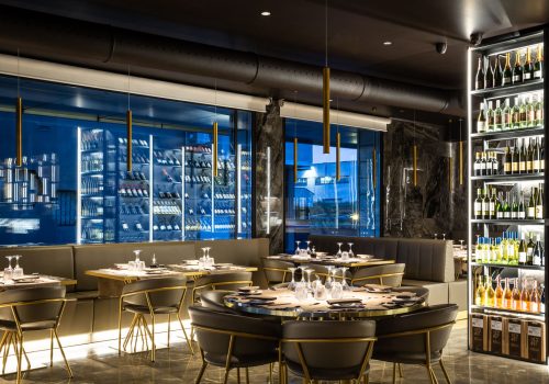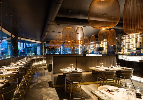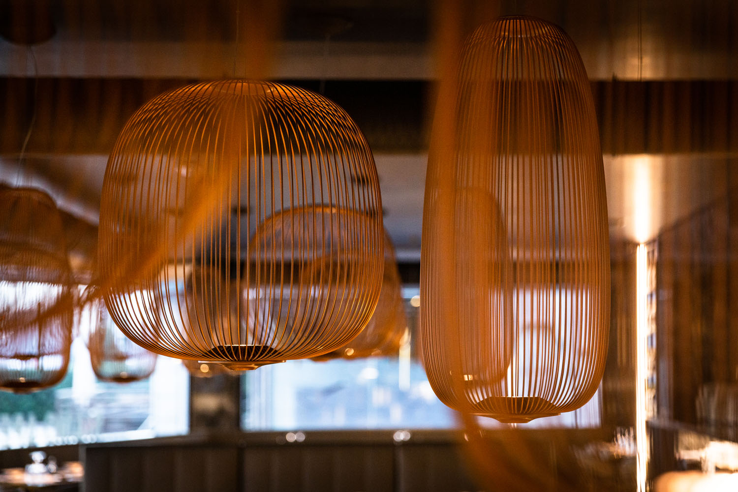 Il viaggio all’interno del ristorante Miho è una continua scoperta di sorprendenti forme, eleganti accostamenti cromatici e infiniti effetti ottici generati da luci e ombre che si intersecano.