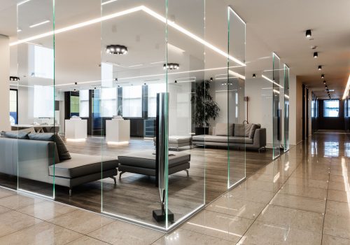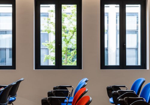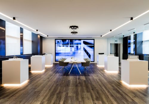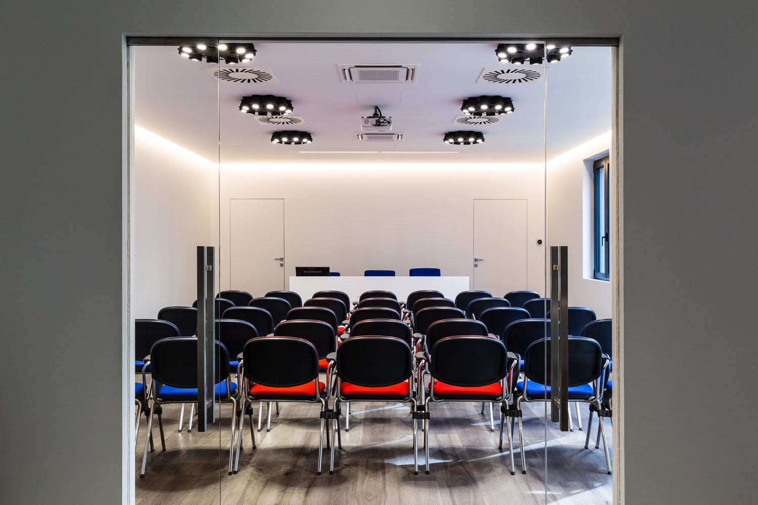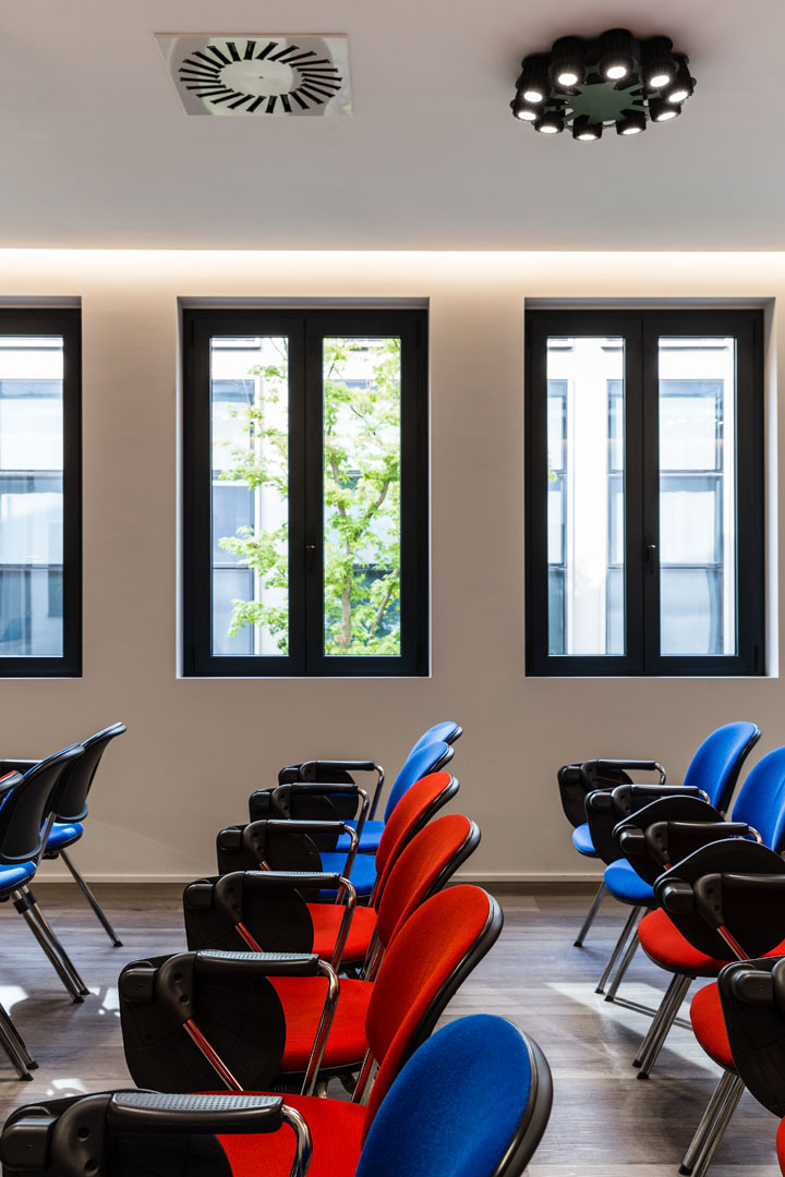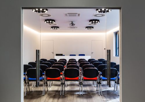 Lo studio del design di interni rende le soluzioni architettoniche fluide e prestanti per un ambiente di ritrovo come una sala riunioni.