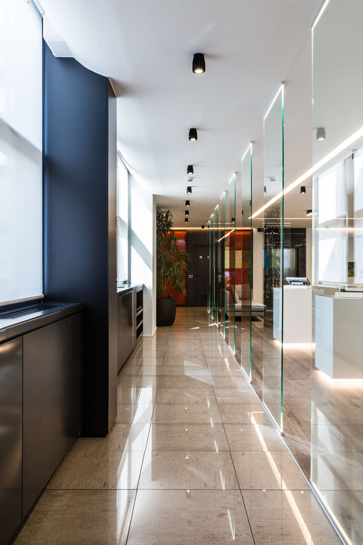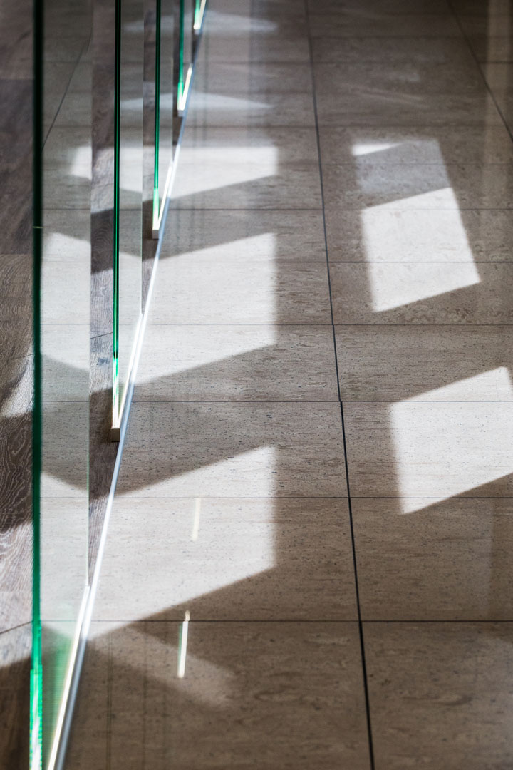 L’illuminazione gioca un ruolo fondamentale nell’alleggerire l’ambiente, mantenendo chiaro però il suo scopo.