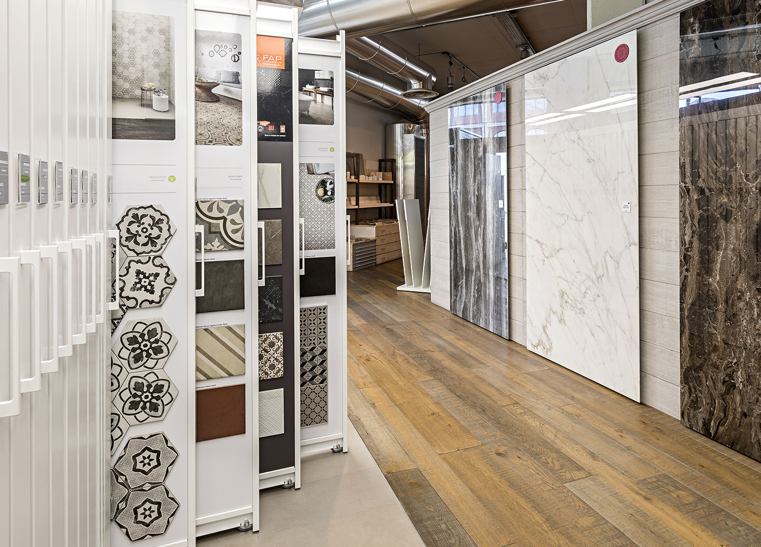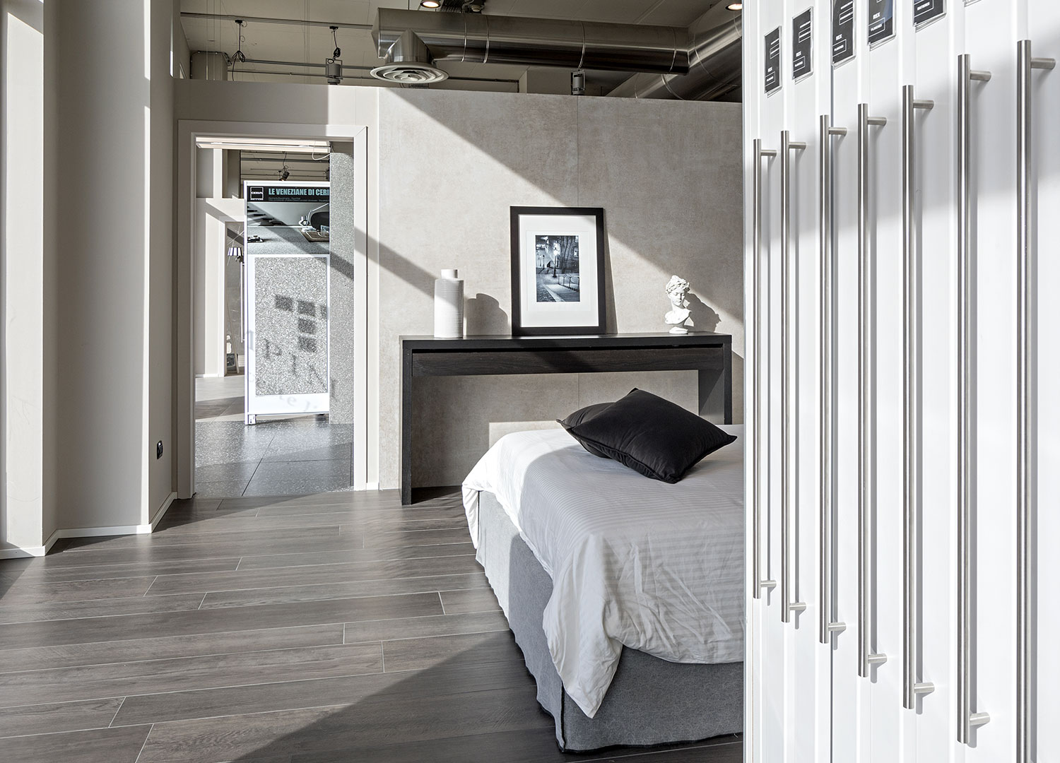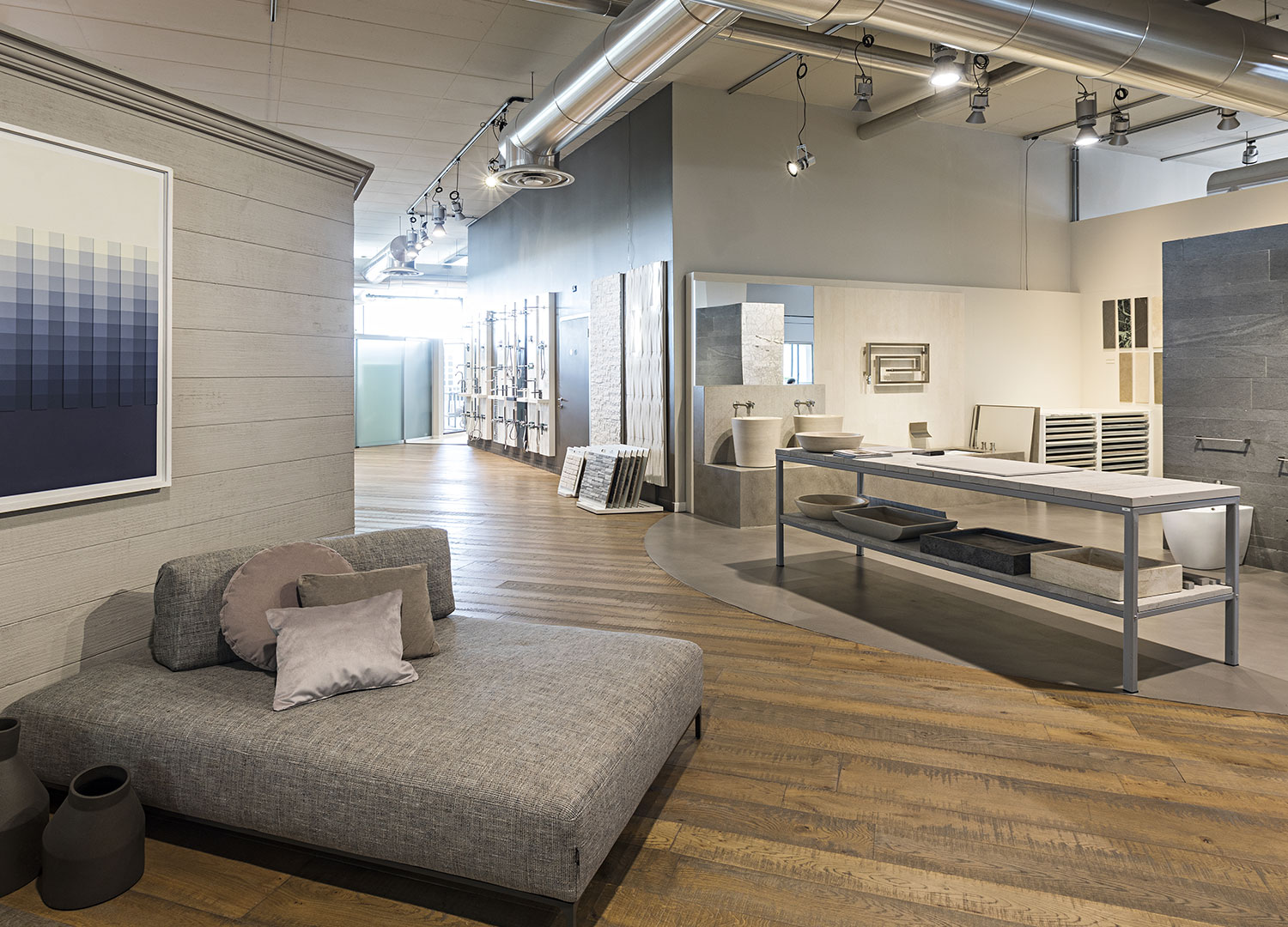 Uno showroom, un ambiente con la funzione primaria di valorizzare un elemento, deve saper gestire sapientemente lo spazio.